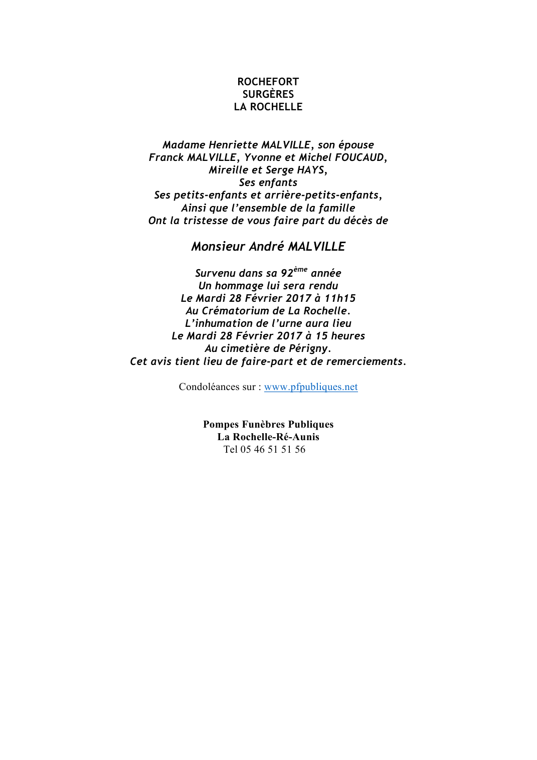 Décédé à Soubise (17780, France) le mardi 21 février 2017 à l'âge de 92 ans