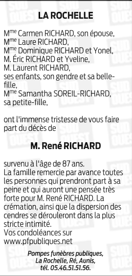Décédé à La Rochelle (17000, France) le jeudi 18 février 2021 à l'âge de 87 ans
