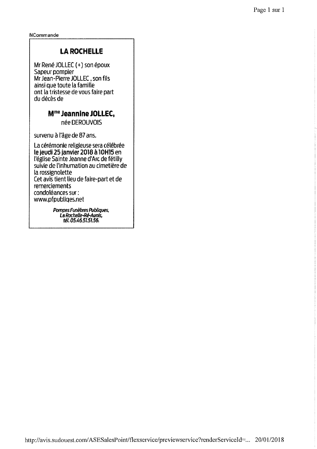 Veuve de Monsieur René JOLLEC