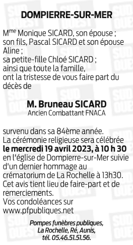 Décédé à La Rochelle (17000, France) le lundi 10 avril 2023 à l'âge de 83 ans