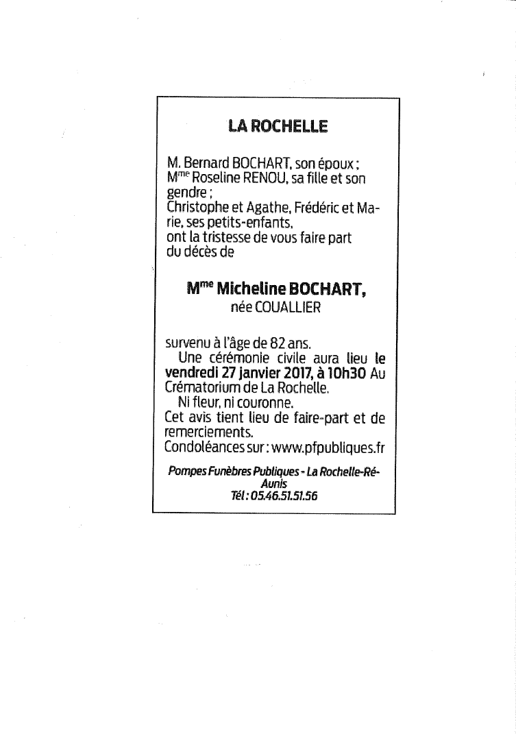 Madame Micheline BOCHART née COUALLIER