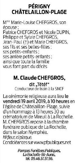 Décédé à La Rochelle (17000, France) le dimanche 14 avril 2019 à l'âge de 89 ans