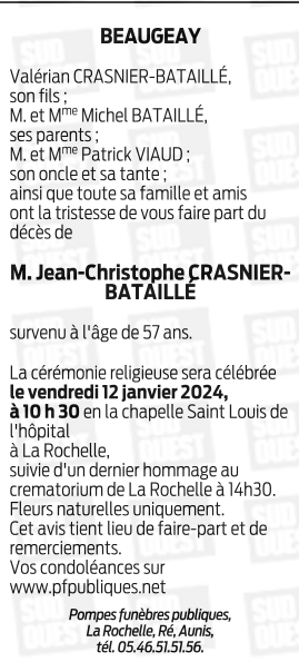 Monsieur Jean-Christophe CRASNIER-BATAILLÉ
