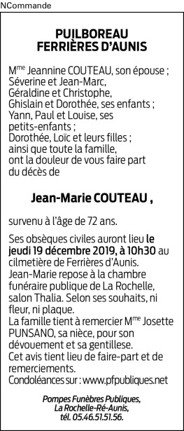 Décédé à Puilboreau (17138, France) le samedi 14 décembre 2019 à l'âge de 72 ans