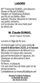 Décédé à La Rochelle (17000, France) le mardi 1 décembre 2020 à l'âge de 82 ans