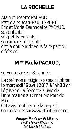Madame Paule PACAUD née PANAGET