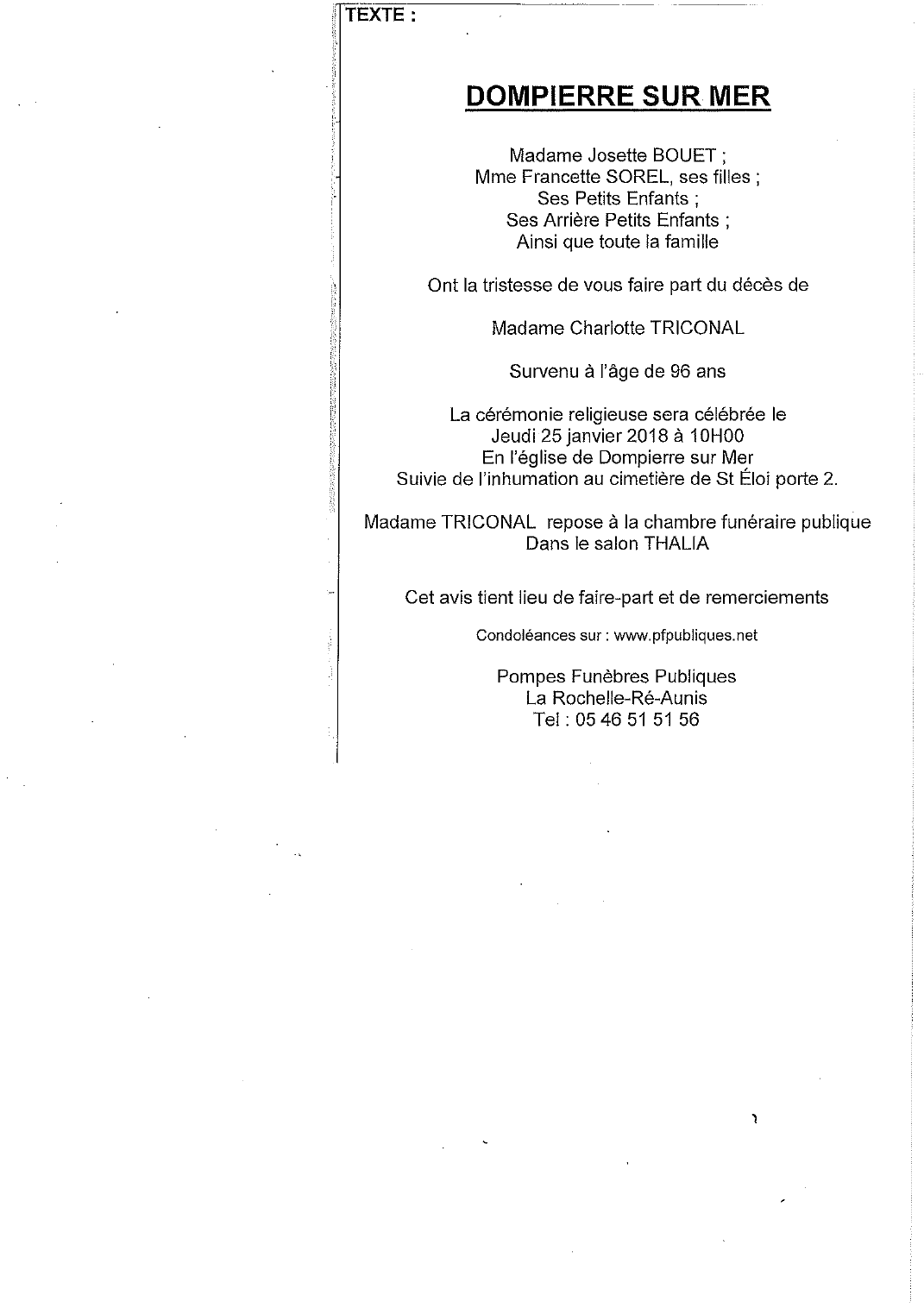 Annonce nécrologique