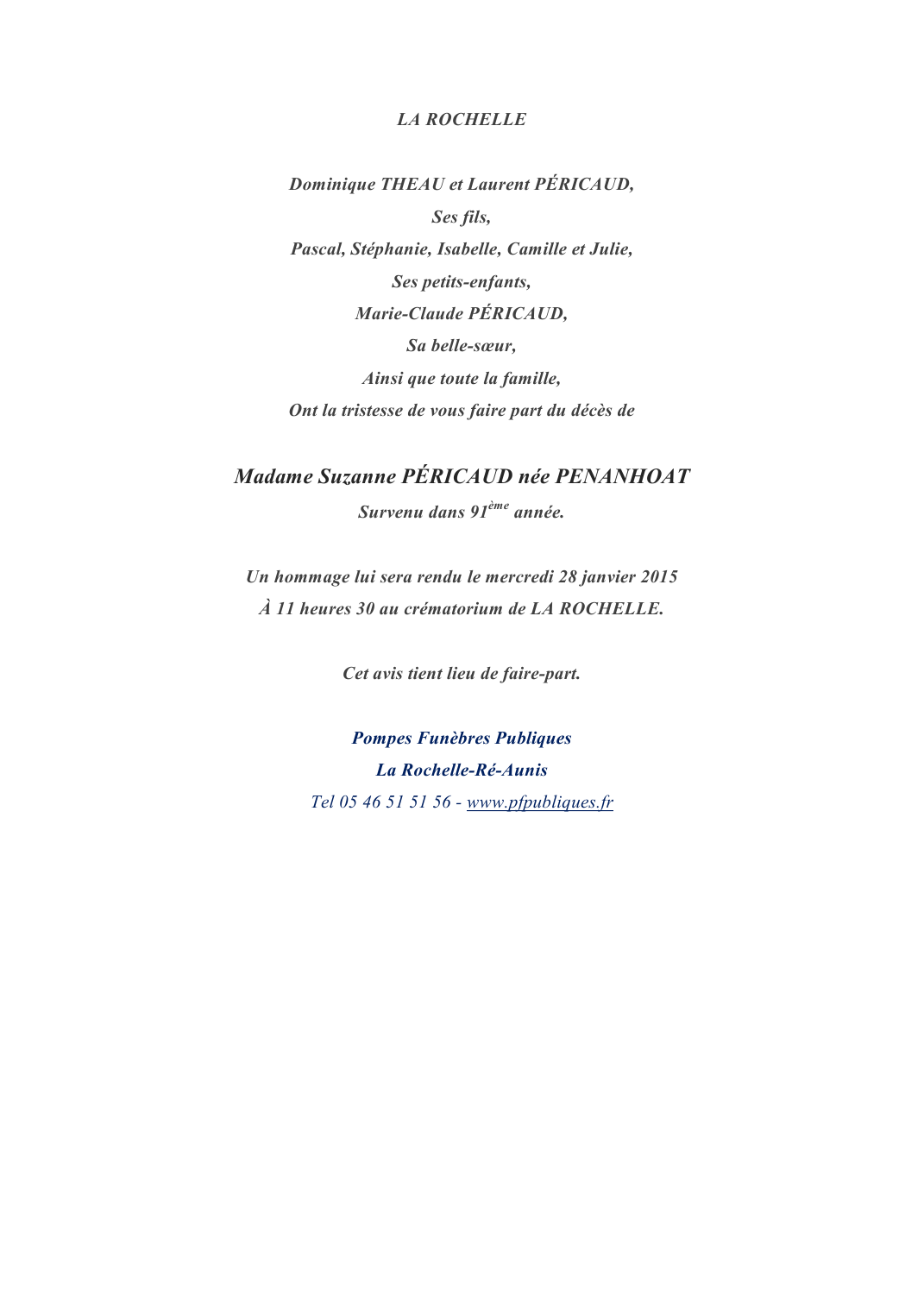 Madame Suzanne PÉRICAUD née PENANHOAT