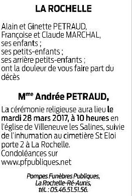 Madame Andrée PETRAUD née BRIZARD