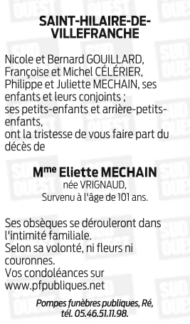 Madame Eliette MECHAIN née VRIGNAUD