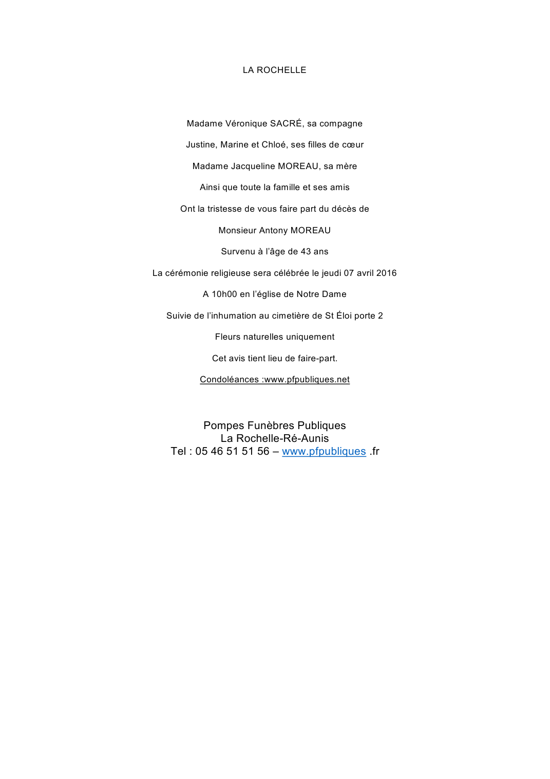 Décédé à Chambon (17290, France) le dimanche 3 avril 2016 à l'âge de 43 ans
