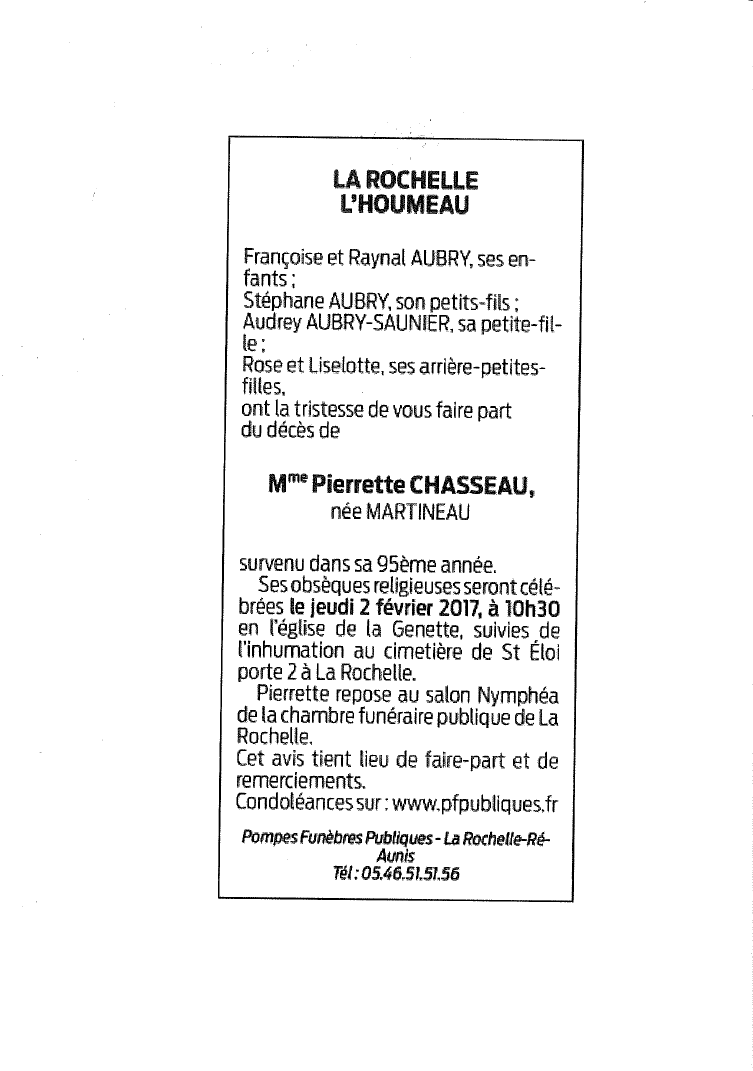Madame Pierrette CHASSEAU née MARTINEAU