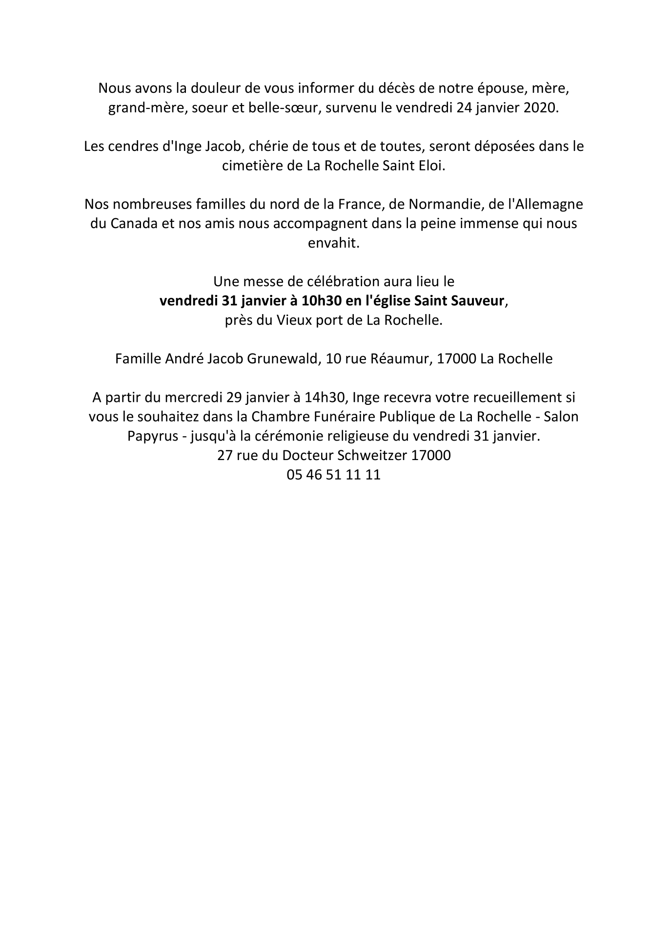 Madame Rosmarie Inge JACOB née GRUNWALD