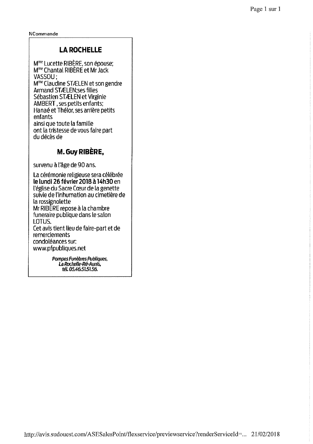 Décédé à La Rochelle (17000, France) le mercredi 21 février 2018 à l'âge de 90 ans