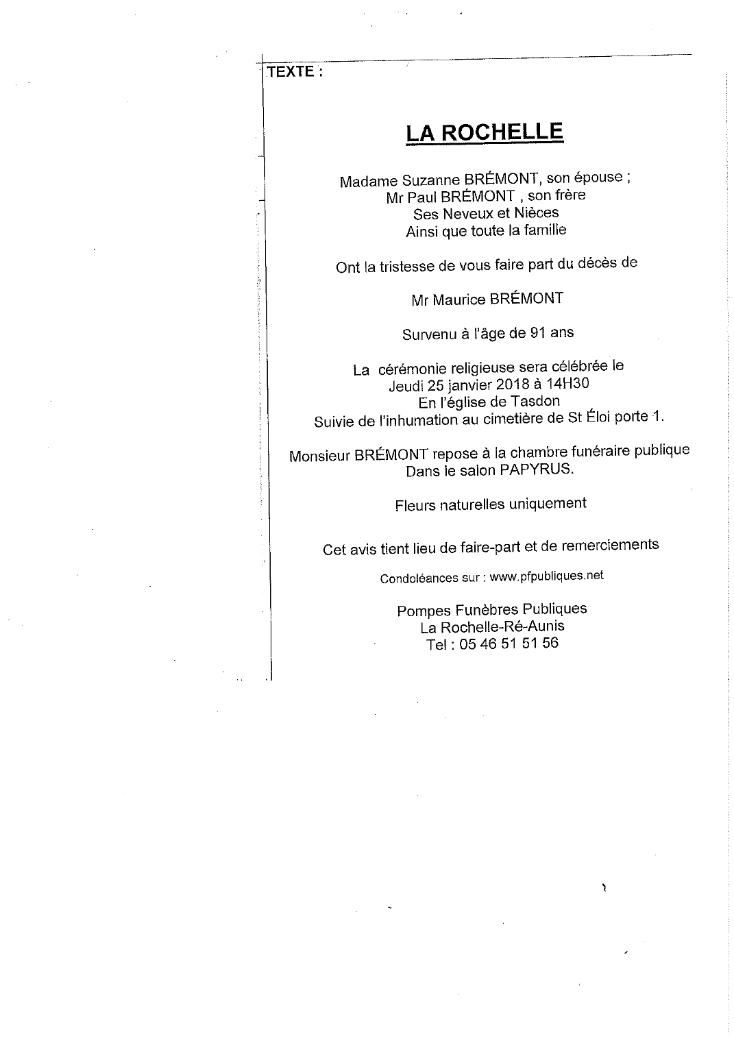 Décédé à La Rochelle (17000, France) le samedi 20 janvier 2018 à l'âge de 91 ans