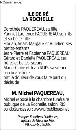 Né à Saint-Martin-de-Ré (17410, France) le vendredi 14 février 1941