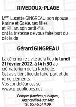 Décédé à La Rochelle (17000, France) le samedi 12 février 2022 à l'âge de 79 ans