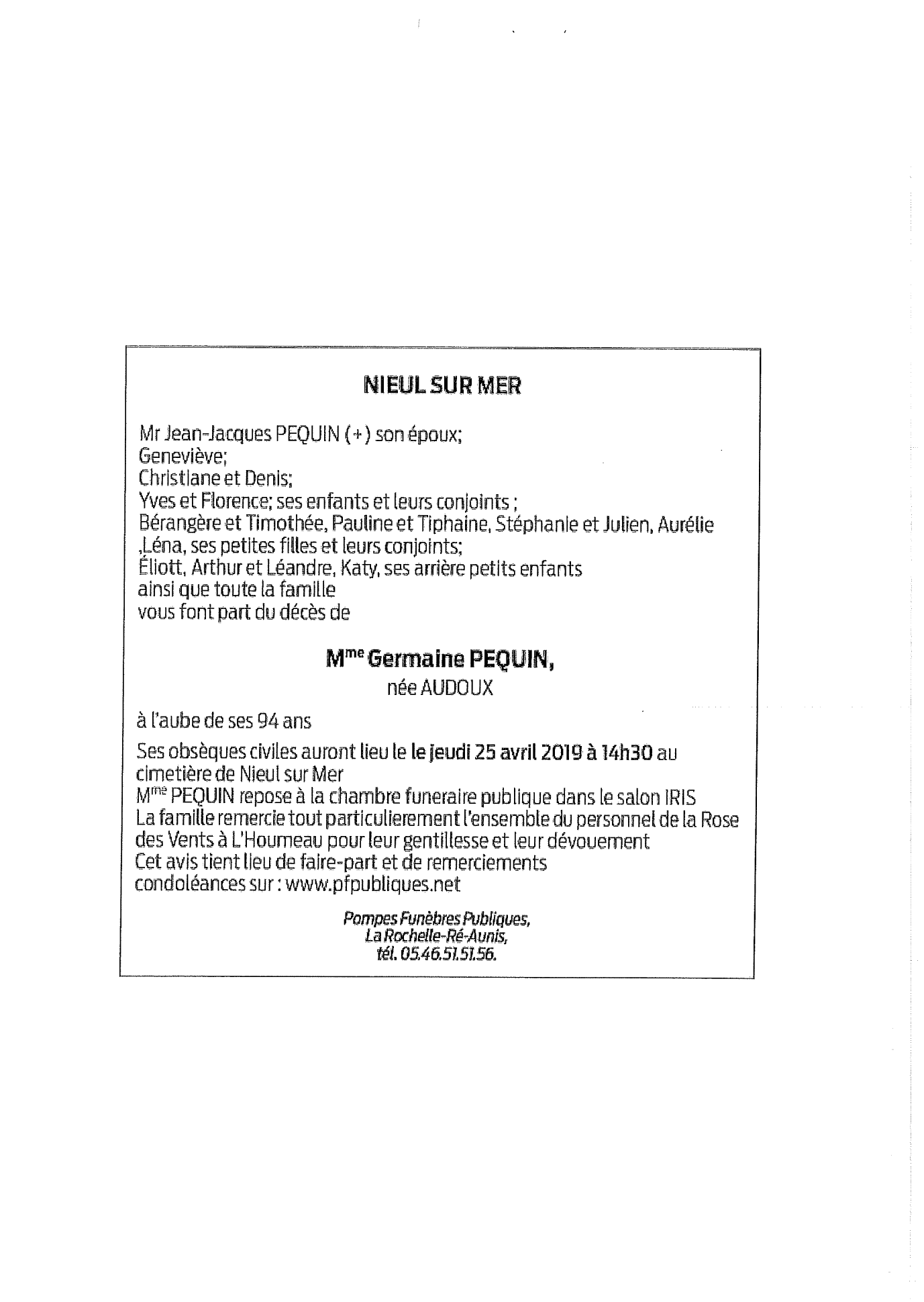 Madame Germaine PEQUIN née AUDOUX