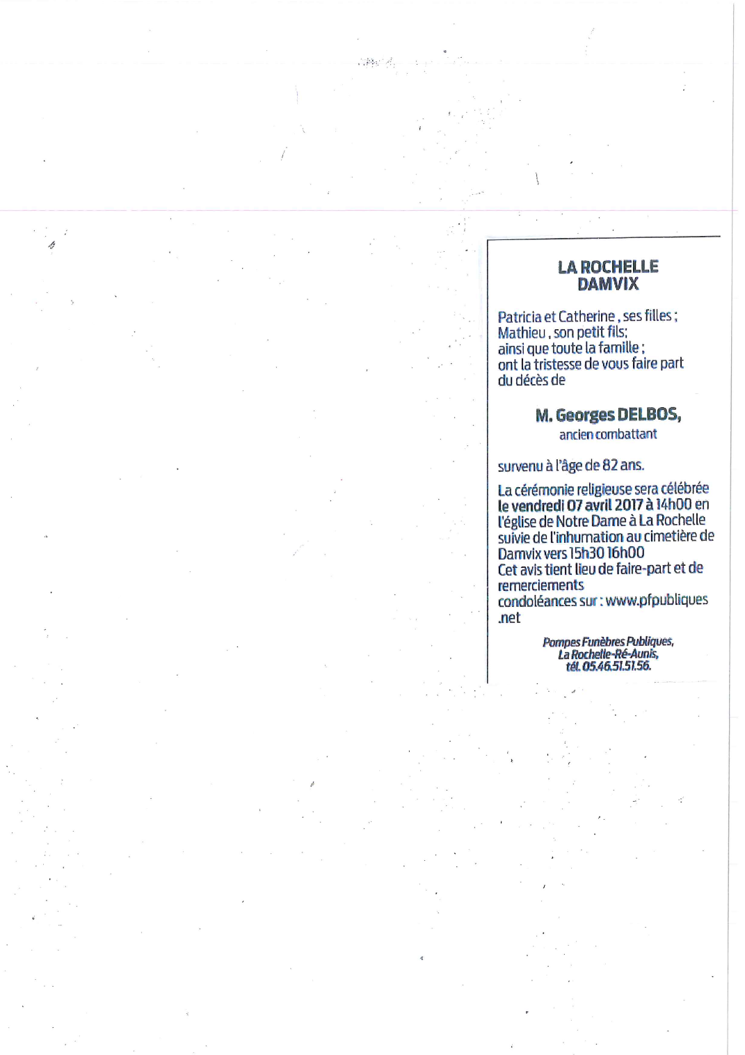 Décédé à Puilboreau (17138, France) le samedi 1 avril 2017 à l'âge de 82 ans