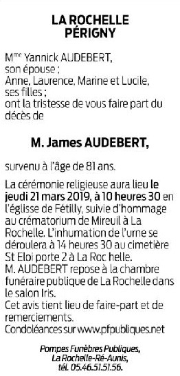 Décédé à La Rochelle (17000, France) le jeudi 14 mars 2019 à l'âge de 81 ans