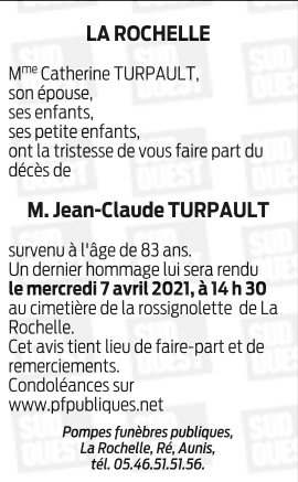 Décédé à La Rochelle (17000, France) le mercredi 31 mars 2021 à l'âge de 83 ans