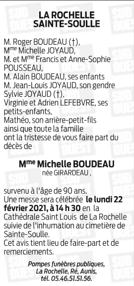 Madame Michelle BOUDEAU née GIRARDEAU