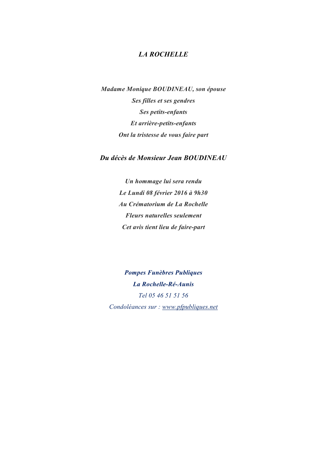 Epoux de Madame Monique BOUDINEAU