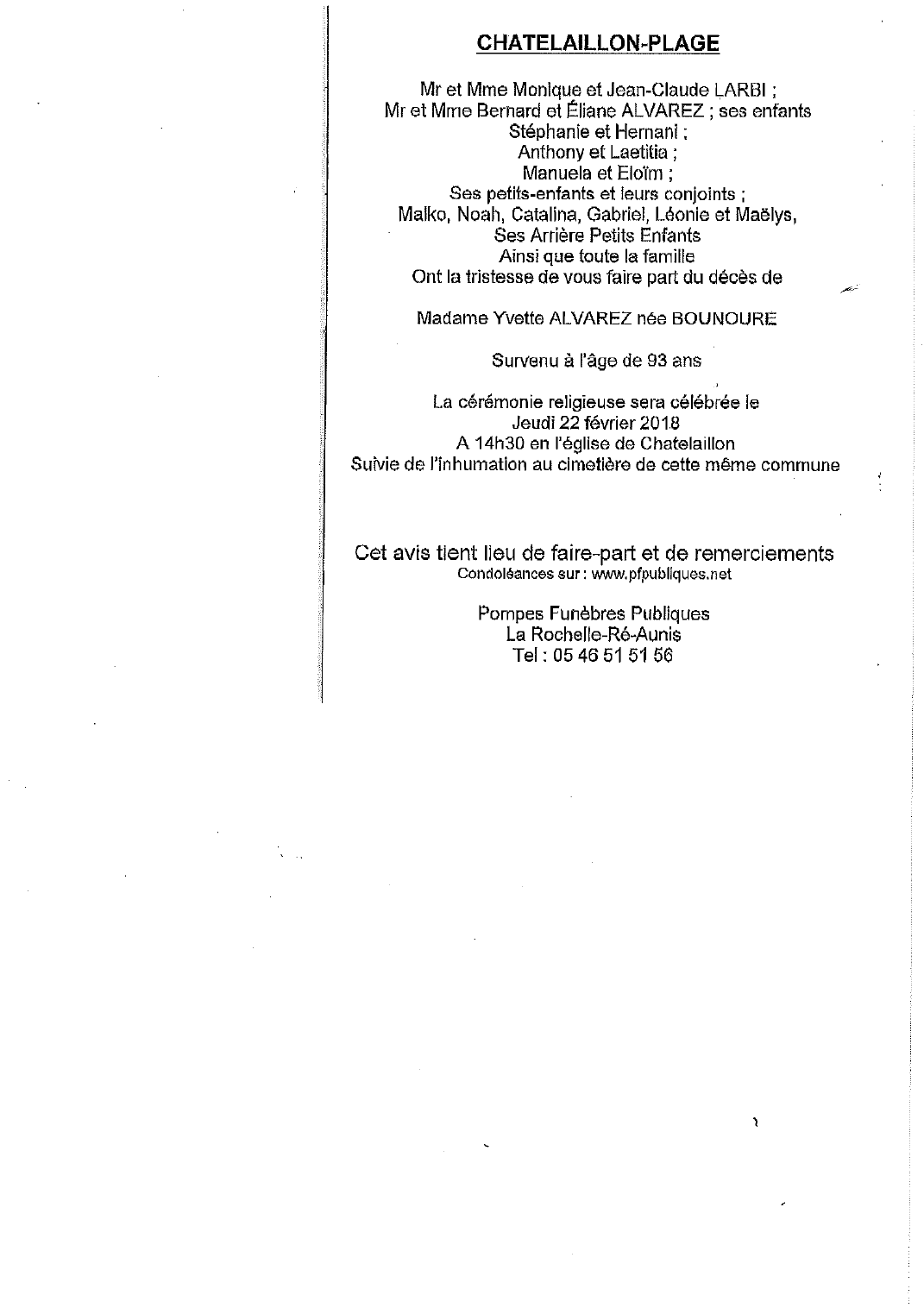 Décédée à La Rochelle (17000, France) le samedi 17 février 2018 à l'âge de 93 ans