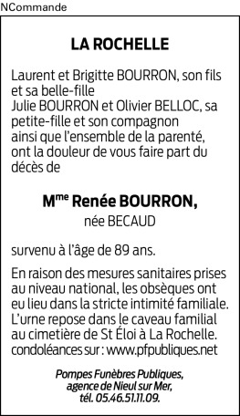 Madame Renée BOURRON née BECAUD