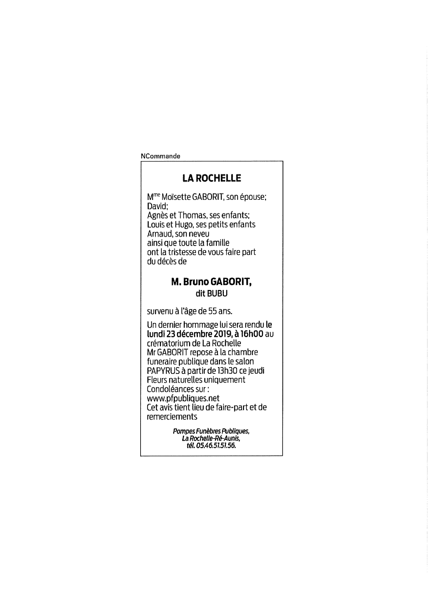 Décédé à La Rochelle (17000, France) le mercredi 18 décembre 2019 à l'âge de 55 ans