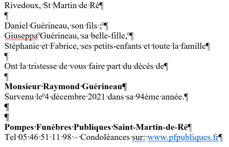 Décédé à Saint-Martin-de-Ré (17410, France) le samedi 4 décembre 2021 à l'âge de 94 ans