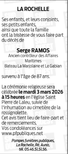 Décédé à Aytré (17440, France) le samedi 21 février 2026 à l'âge de 87 ans