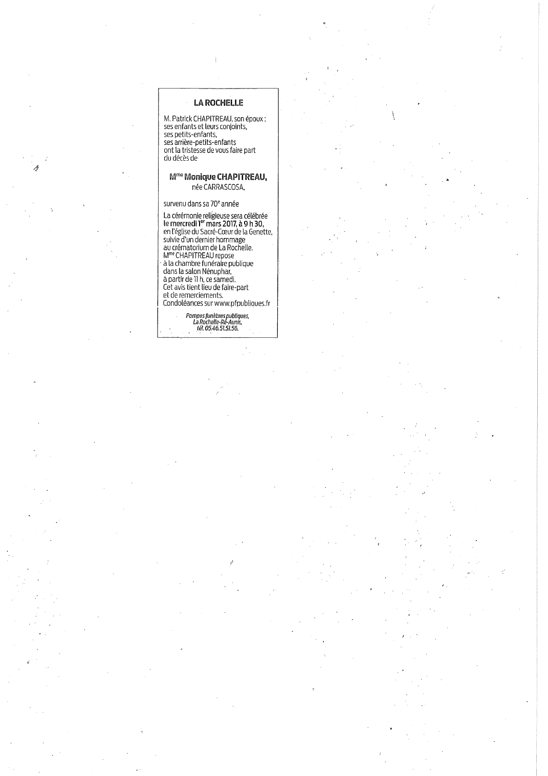 Madame Monique CHAPITREAU née CARRASCOSA