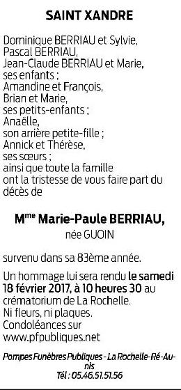 Madame Marie-Paule BERRIAU née GUOIN