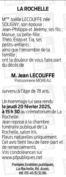 Décédé à La Rochelle (17000, France) le mardi 11 février 2025 à l'âge de 78 ans