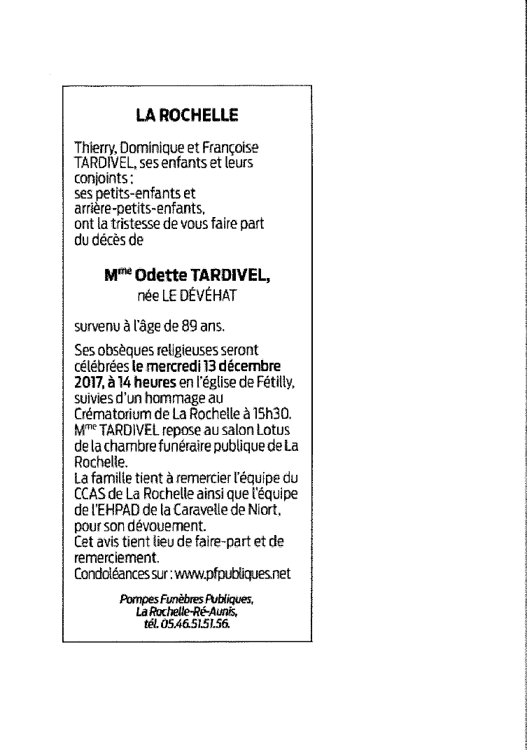 Madame Odette TARDIVEL née LE DÉVÉHAT