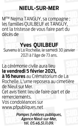 Décédé à La Rochelle (17000, France) le samedi 30 janvier 2021 à l'âge de 73 ans